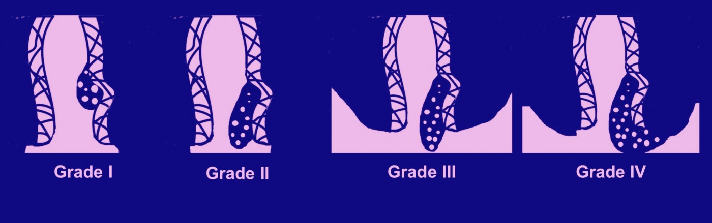 | 第二級 | 排便時會脫出,但可自行縮回 | 門診處置:保守治療、結紮 |